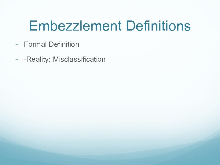 Embezzlement Definitions - Formal Definition - -Reality: Misclassification