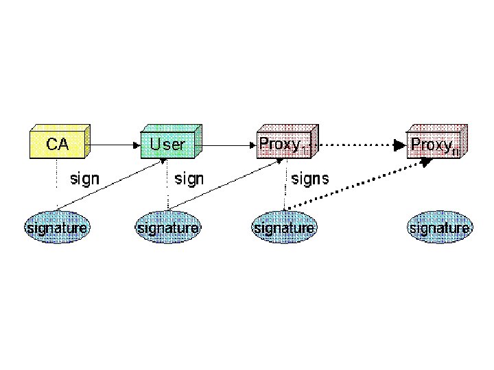 GSI: Delegation and Single Sign -On • • • The GSI provides a delegation capability: an extension of the standard SSL protocol which reduces the number of times the user must enter his passphrase. If a Grid computation requires that several Grid resources be used (each requiring mutual authentication), or if there is a need to have agents (local or remote) requesting services on behalf of a user, the need to re-enter the user's passphrase can be avoided by creating a proxy. A proxy consists of a new certificate (with a new public key in it) and a new private key. The new certificate contains the owner's identity, modified slightly to indicate that it is a proxy. The new certificate is signed by the owner, rather than a CA. (See diagram below. ) The certificate also includes a time notation after which the proxy should no longer be accepted by others. Proxies have limited lifetimes. The proxy's private key must be kept secure, but because the proxy isn't valid for very long, it doesn't have to kept quite as secure as the owner's private key. It is thus possible to store the proxy's private key in a local storage system without being encrypted, as long as the permissions on the file prevent anyone else from looking at them easily. Once a proxy is created and stored, the user can use the proxy certificate and private key for mutual authentication without entering a password. When proxies are used, the mutual authentication process differs slightly. The remote party receives not only the proxy's certificate (signed by the owner), but also the owner's certificate. During mutual authentication, the owner's public key (obtained from her certificate) is used to validate the signature on the proxy certificate. The CA's public key is then used to validate the signature on the owner's certificate. This establishes a chain of trust from the CA to the proxy through the owner. Note that the GSI and software based on it (notably the Globus Toolkit, GSI-SSH, and Grid. FTP) is currently the only software which supports the delegation extensions to TLS (a. k. a. SSL). The Globus Project is actively working with the Grid Forum and the IETF to establish proxies as a standard extension to TLS so that GSI proxies may be used with other TLS software.