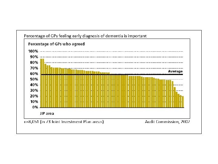Some key findings from the reviews – Mental Health Care More than half of people with dementia are not diagnosed National Audit Office (2007) - Improving services and support for people with dementia