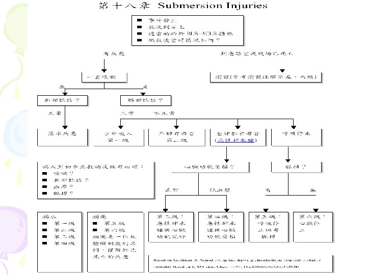 一、證據本位的國際急救準則: 在第二屆American Heart Association (AHA)International Evidence Evaluation Conference 以及the international Guidelines 2000 Conference on CPR and ECC, 國際間 專家的參與,大幅改變了未來的急救準則。未來的急救準則,必需要有國際性的實證醫學 研究資料(evidence-based medicine)為基礎,才能達到應有的正確性及可信度。 2000 年指引會議是世界上第一次以國際性、科學性及證據為基礎之有關急救復甦的會議。 所有指引皆經嚴密之審察,遵守實證醫學(evidence-based medicine)之原則。在指引後面 之括弧內標有Class Ⅰ、Ⅱa、Ⅱb、Ⅲ及“尚待決定”之分級,這是表示過去實驗數據支持 此指引之強度。 一般而言,各分級之意義如下: Class I(第一級):表示在人體實驗上證明良好,確定有效之證據,並至少有一證據是 前 瞻性、隨機、控制下、正面效果的臨床試驗。 Class Ⅱa:表示在人體實驗上是安全、有效。許多專家認為標示Class Ⅱa 的指引,非 常值 得推薦採用。 Class Ⅱb:指證據力不及Ⅱa,但對人體無害。許多專家認為標示Ⅱb 之指引為可接受 之替代 方案。 尚待決定: 證據不足以支持建議為臨床使用。通常這些指引尚在臨床嘗試階段,需要進 一步 再收集資料判斷。 Class Ⅲ: 表示沒有效用,但可能有害,因此不被接受。