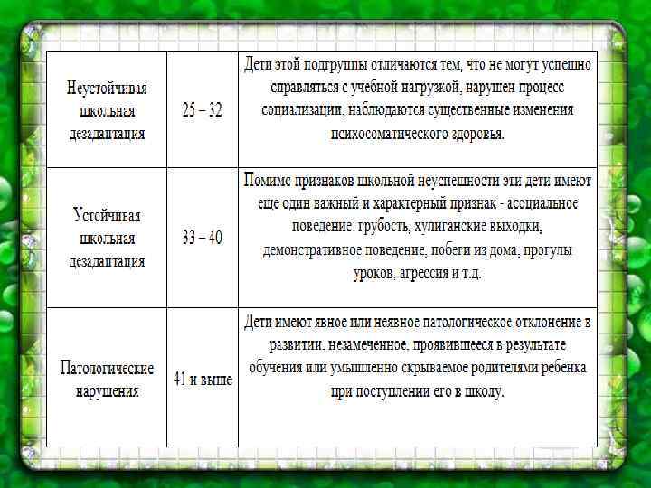 Адаптация приспособление ребенка к новой системе социальных условий, новым отношениям, требованиям, видам деятельности, режиму жизнедеятельности. Дезадаптация образование неадекватных механизмов приспособления ребенка к школе в форме нарушений учебы и поведения, конфликтных отношений, психогенных заболеваний и реакций, повышенного уровня тревожности, искажений в личностном развитии.