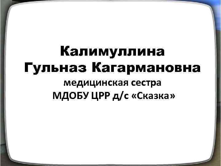 Калимуллина Гульназ Кагармановна медицинская сестра МДОБУ ЦРР д/с «Сказка»