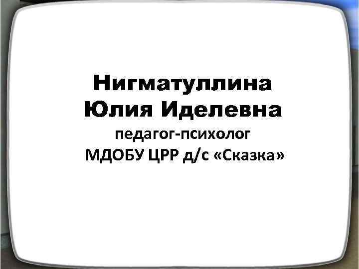 Нигматуллина Юлия Иделевна педагог-психолог МДОБУ ЦРР д/с «Сказка»