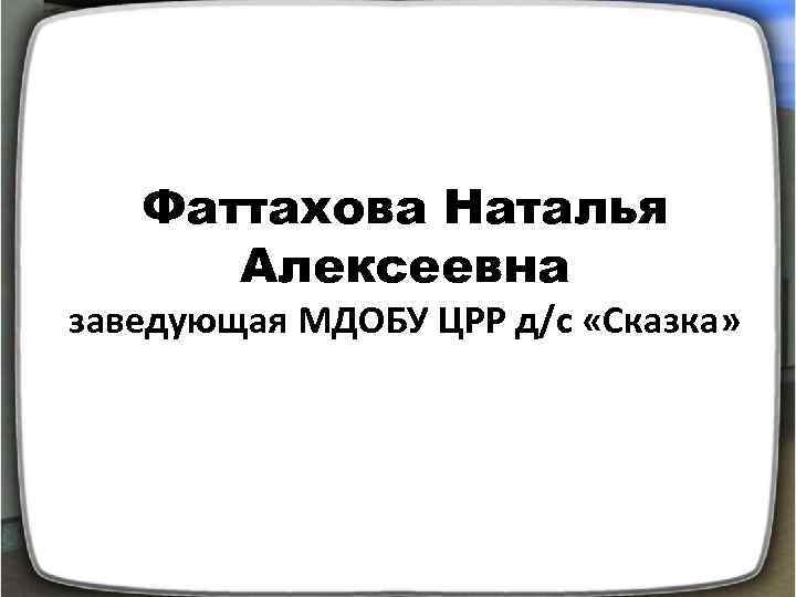 Фаттахова Наталья Алексеевна заведующая МДОБУ ЦРР д/с «Сказка»