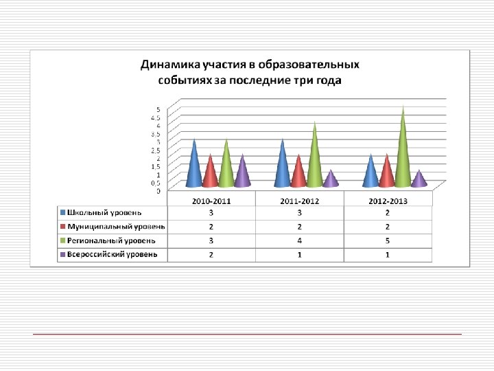 Участие обучающихся в академических и неакадемических олимпиадах разного уровня Наименование мероприятия Учебный год Уровень мероприятия Классы Кол-во участников Результат Школьный этап 2013 Всероссийской олимпиады по русскому языку школьный 4 5 Призёр Егоров Сергей Школьный этап 2013 Всероссийской олимпиады по литературному чтению школьный 4 5 Призёр Лежнин Виктор Призёр Егоров Сергей Школьный тур 2014 Всероссийской олимпиады по русскому языку школьный 1 2 Призёр Сафонова Александра Районная межшкольная олимпиада по окружающему миру, русскому языку 2012 муниципальный 3 4 Призёр Лежнин Виктор Победитель Егоров Сергей Всероссийский конкурс «Эрудит» (русский язык) 2013 всероссийский 4 1 Призёр Кузнецова Алина Всероссийский конкурс «Эрудит России» (русский язык) 2014 всероссийский Лауреат Болтовский Михаил