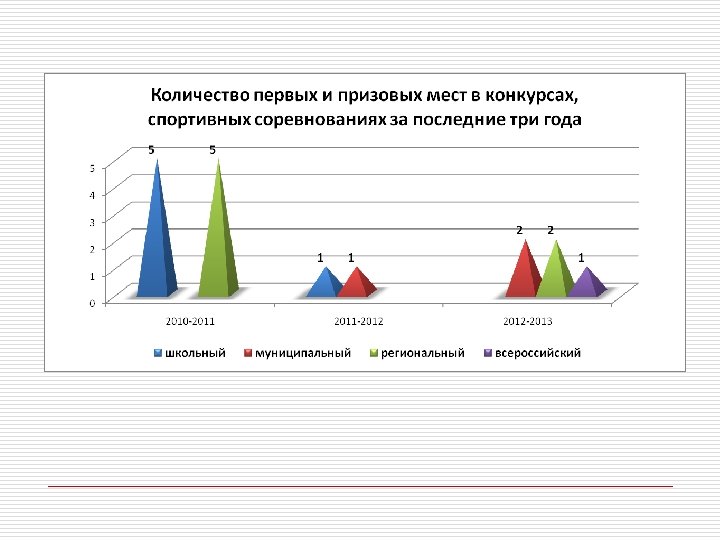 Призёры и победители конкурсов различной направленности Учебный год Уровень мероприятия Классы Кол-во участников Результат (наличие победителей, призеров, лауреатов с указанием Ф. И. обучающего) 2014 -2015 Школьный 2 21 Победитель Столбов Иван Победитель Левадная Дарья Конкурс чтецов «Навстречу Победе» 2014 -2015 Школьный 2 18 Победитель Левадная Дарья Конкурс прикладного творчества «Мир глазами детей» в рамках районной экологической конференции учащихся «Мы живём в краю родном» 2015 -2016 Муниципальный 3 2 Призёр Болтовский Михаил Наименование мероприятия Легкоатлетический кросс, посвящённому 70– летию Победы в Великой Отечественной войне Конкурс технического творчества «Я – конструктор» 2015 -2016 Муниципальный 3 4 Призёр Левадная Дарья Призёр Котов Виталий 2014 -2015 Региональный 2 2 Призёр Болтовскиий Михаил Призёр Левадная Дарья 2015 -2016 Региональный 3 2 Призёр Болтовскиий Михаил Призёр Левадная Дарья Конкурс детского творчества «Воспитываем здоровое поколение» 2011 -2012 Региональный 3 1 Лауреат Лежнин Виктор Всероссийский детский конкурс научно –исследовательских и творческих работ «Первые шаги в науке» 2012 -2013 Всероссийский 4 1 Призёр Егоров Сергей Областная научно- исследовательская конференция «Мой первый проект»