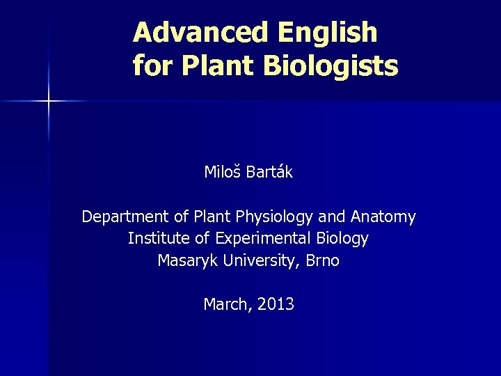 Advanced English for Plant Biologists Miloš Barták Department of Plant Physiology and Anatomy Institute of Experimental Biology Masaryk University, Brno March, 2013