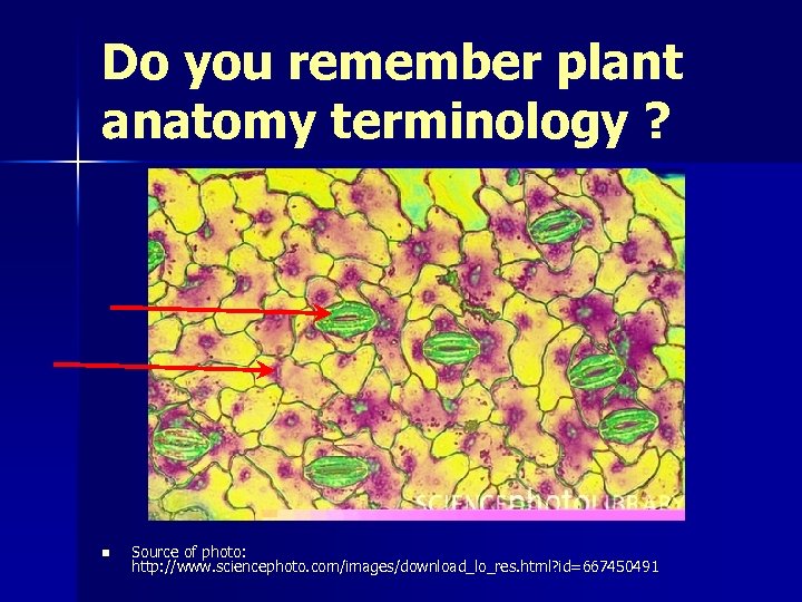 Do you remember plant anatomy terminology ? n Source of photo: http: //www. sciencephoto. com/images/download_lo_res. html? id=667450491