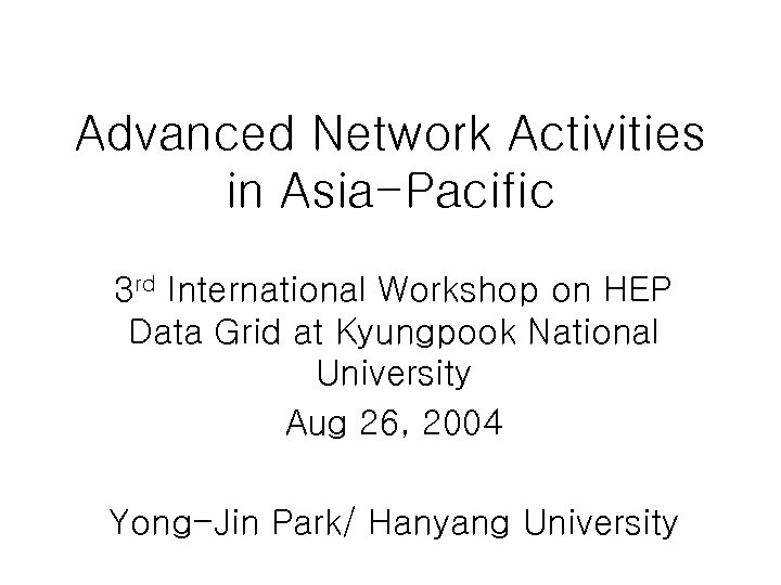 Advanced Network Activities in Asia-Pacific 3 rd International Workshop on HEP Data Grid at Kyungpook National University Aug 26, 2004 Yong-Jin Park/ Hanyang University