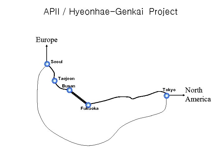 APII / Hyeonhae-Genkai Project Europe Seoul Taejeon New Gb. E Links Busan Tokyo North America Fukuoka previous 8 Mbps link