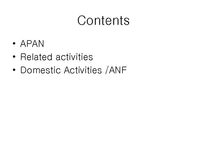Contents • APAN • Related activities • Domestic Activities /ANF