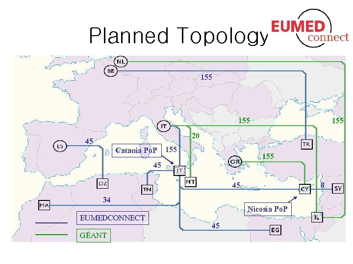 Planned Topology 155 155 20 45 Catania Po. P 155 45 45 8 34 Nicosia Po. P EUMEDCONNECT GÉANT 45