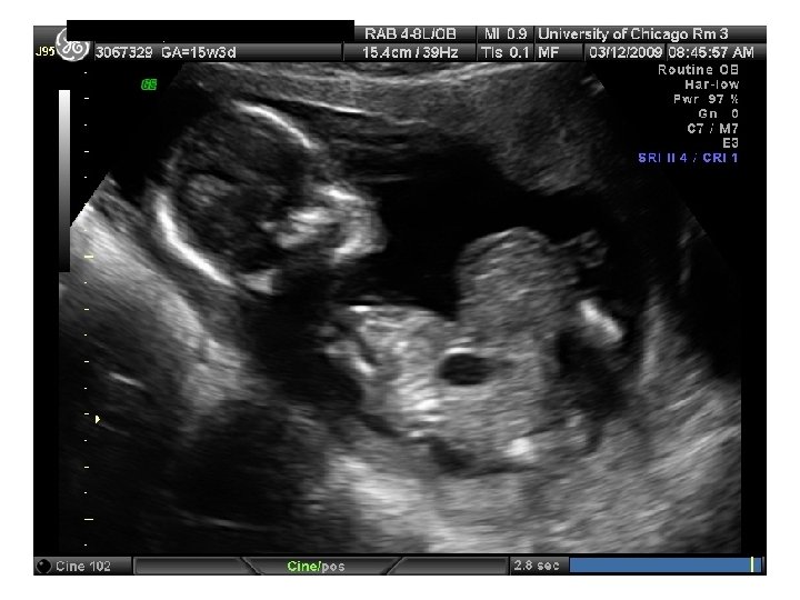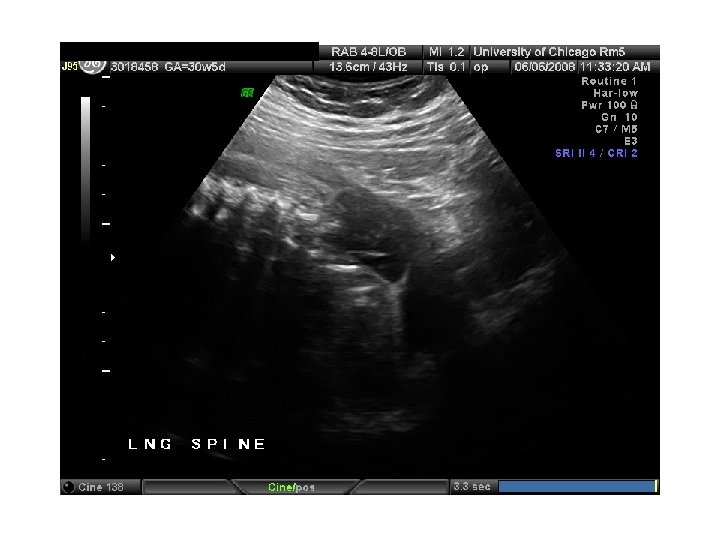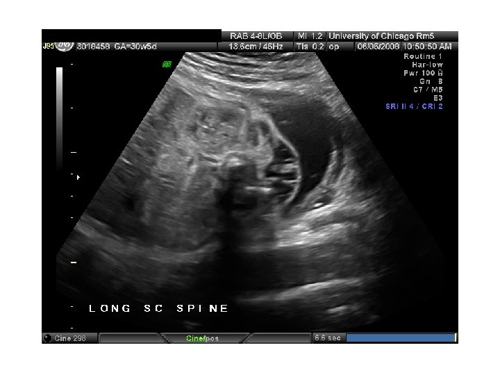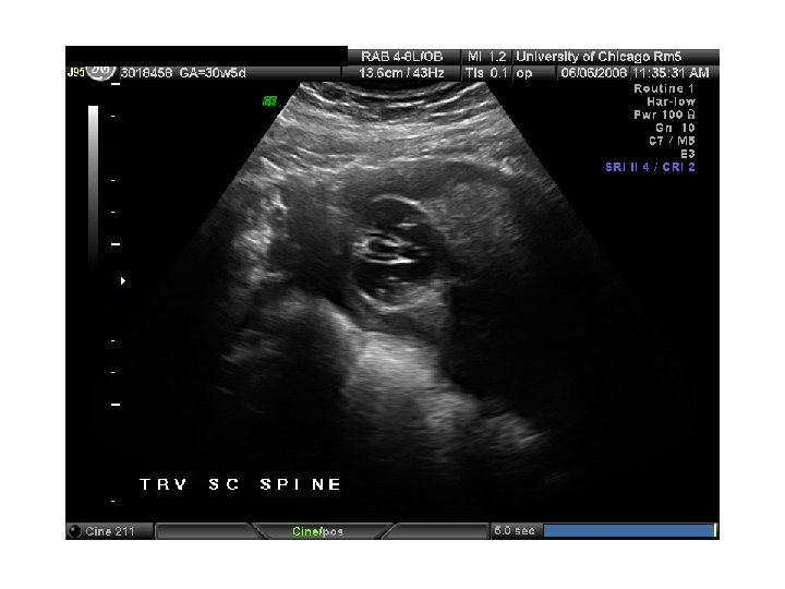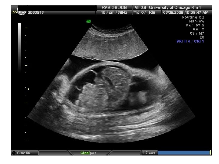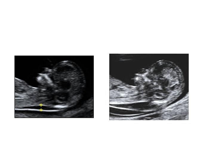 First Trimester Screen • • • Narrow, fluid filled space between the back of the spine and the skin Usually 1 -2 m thick at 1013 weeks Increases with gestational age (17% per week) Value is expressed as a multiple of the median (Mo. M). Aneuploidy risk 17% if NT > 3 mm