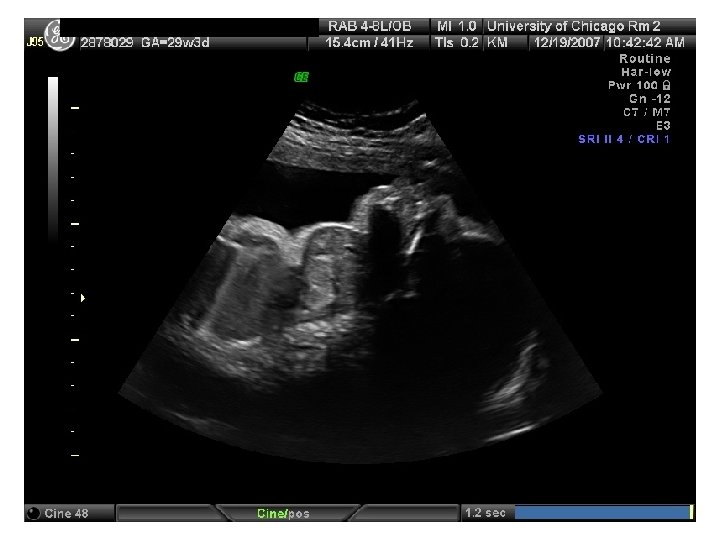 First Trimester Screen • Offers earlier diagnosis (11 -13 weeks) • Serum markers PAPP-A – 60% lower in DS free ß-h. CG – 80% higher in DS total h. CG -- ok in combination with NT and PAPP-A • Ultrasound nuchal translucency