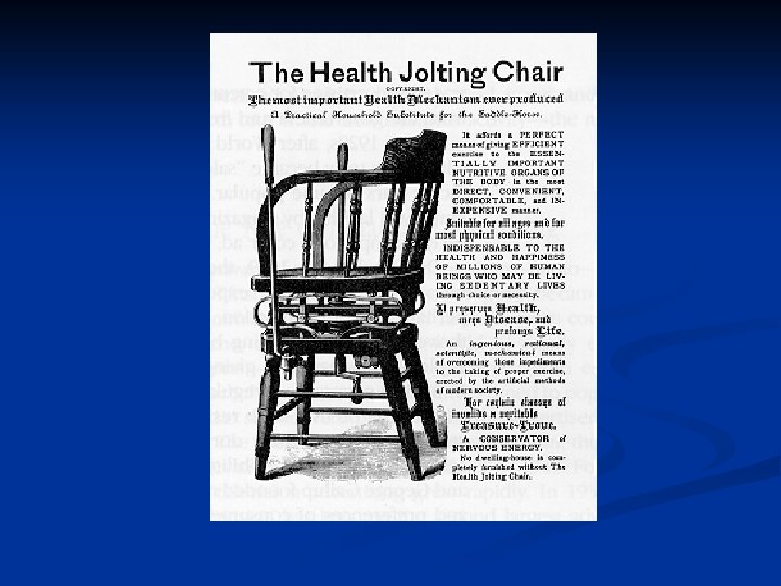 n Early sales-oriented ads were basically “caveat emptor” (let the buyer beware) Producers said whatever they wanted and thought they could get away with n For example, the “Health Jolting Chair” n