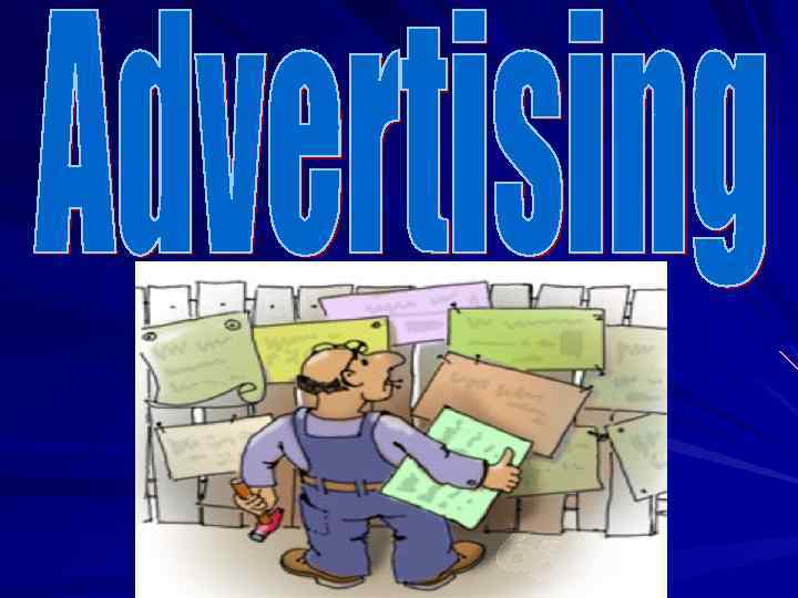 Advertising (from the Latin. Reclamare - «say shout, protest") - information distributed by any means, in any form or by any means, addressed to the general public and aimed at drawing attention to the subject of advertising, forming or maintaining interest in it and its promotion. Forms Economic advertising. The purpose of advertising is the economic consumer (potential buyer), suggesting the commodity which can be obtained from him in return for a profit. ; Social advertising - beyond economic issues, aims to achieve charities and other socially useful purposes: promoting healthy lifestyles among the population, support for vulnerable people, the fight against pollution, to popularize public organizations and foundations whose purpose is to help the people around them, in particular children. ; Political advertising (including pre-election). In our time, it is increasingly acting as a means of fighting for the voters for their votes. It is with the help of some parties and politicians are trying to win a place in power.