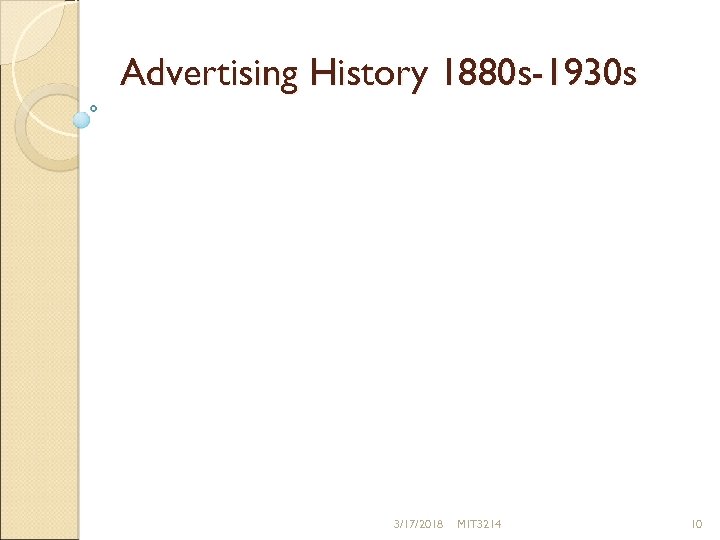 Advertising History 1880 s-1930 s 3/17/2018 MIT 3214 10
