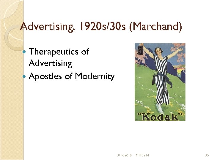 Advertising, 1920 s/30 s (Marchand) Therapeutics of Advertising Apostles of Modernity 3/17/2018 MIT 3214 30
