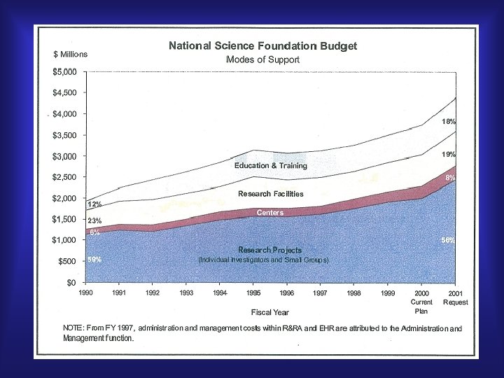 Appropriations for the National Science Foundation FY 1998 - 2004 In millions of dollars Total Growth FY 98 – FY 04: $2. 2 billion (65%) FY’ 98 Authorized ---] FY’ 99 FY’ 00 FY’ 01 FY’ 02 FY’ 03 FY’ 04 FY’ 05 FY’ 06 FY’ 07 (Request) [ ---