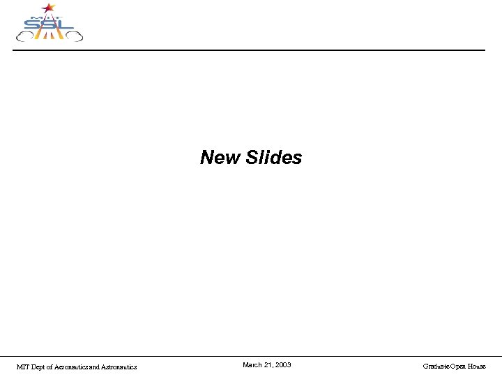 New Slides MIT Dept of Aeronautics and Astronautics March 21, 2003 Graduate Open House