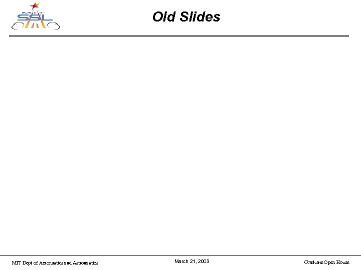 Old Slides MIT Dept of Aeronautics and Astronautics March 21, 2003 Graduate Open House
