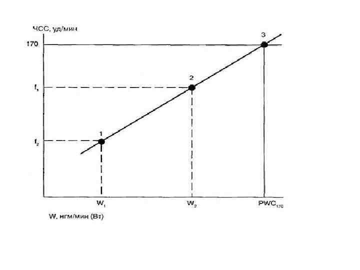 1 метод: Определение PWC 170 c помощью велоэргометра Для определения величины PWC 170 испытуемый последовательно выполняет две нагрузки различной интенсивности в течение 4 минут, каждая с интервалом трехминутного отдыха при частоте педалирования 60 -70 в минуту. Нагрузку выполняют без предварительной разминки. Величину физической нагрузки рассчитывают разными способами. Наиболее простой способ: мощность первой нагрузки W 1 составляет 1 Вт/кг массы тела (или 6 кгм/мин); мощность второй нагрузки W 2– 2 Вт/кг массы (или 12 кгм/мин).