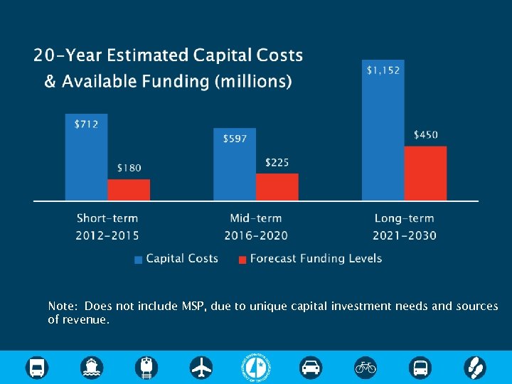 Note: Does not include MSP, due to unique capital investment needs and sources of revenue.