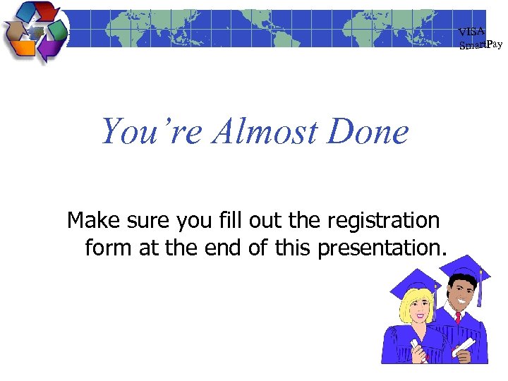 VISA Smart. Pay You’re Almost Done Make sure you fill out the registration form at the end of this presentation.