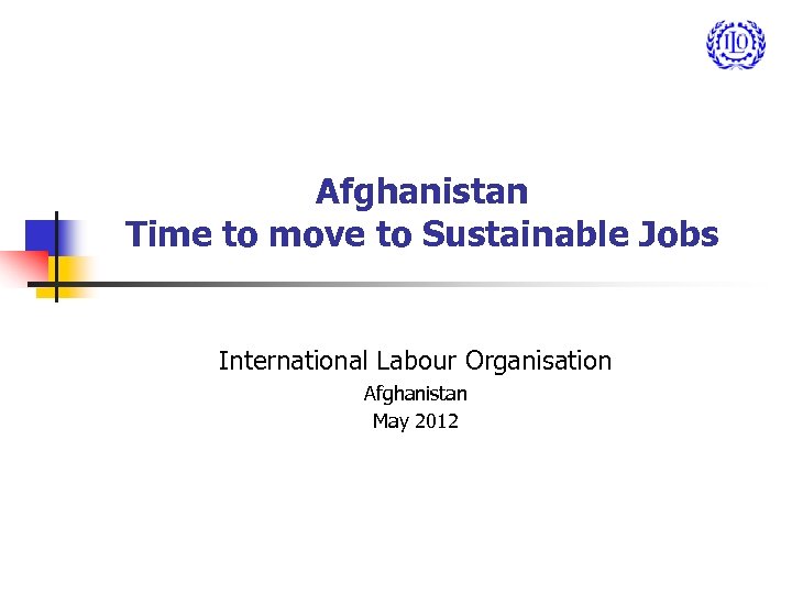 Afghanistan Time to move to Sustainable Jobs International Labour Organisation Afghanistan May 2012