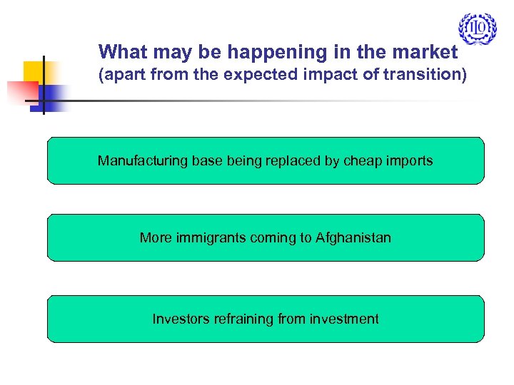 What may be happening in the market (apart from the expected impact of transition) Manufacturing base being replaced by cheap imports More immigrants coming to Afghanistan Investors refraining from investment