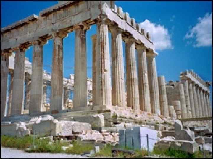Главный храм Акрополя - Парфенон. Он посвящен покровительнице города Афине Парфенон, сооруженный целиком из мрамора, окруженный колоннами, вызывал всеобщее восхищение.