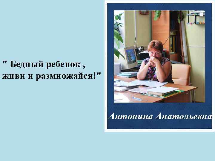 " Бедный ребенок , живи и размножайся!" Антонина Анатольевна