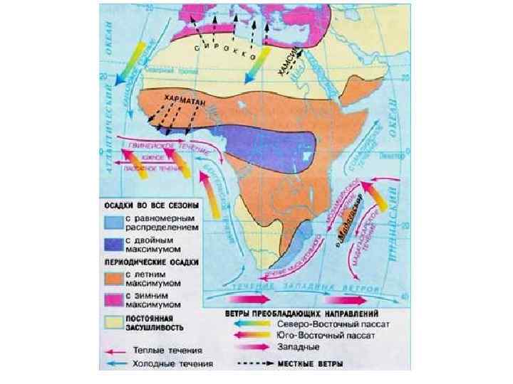 Что влияет на климат Африки • Положение между тропиками • Пассаты приносят влажный воздух с Индийского океана • На восточном побережье – теплые течения, на западном – холодные • Мало гор