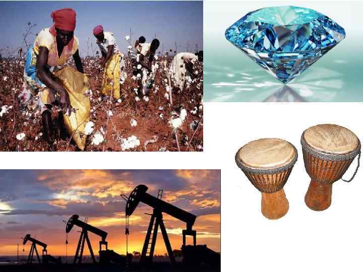 Западная Африка • Бананы, какао, кофе • Нефть, бокситы, золото, железная руда, алмазы • Наиболее густонаселенный регион • Нигерия-самая большая по численности населения страна Африки • Самый крупный город Зап. Африки – Лагос • Очень много народов