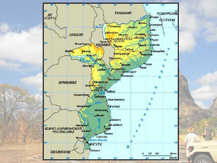 Мозамбик • Республика Мозамбик находится на юговостоке континента и омывается водами Индийского океана. • Ее площадь превышает 799 тыс. км 2. • Общая численность населения составляет почти 22 млн человек. • Столица - Мапуту. • Мозамбик - одна из беднейших аграрных государств.
