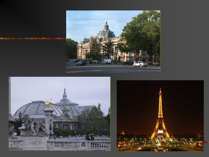 The Third republic n n n Established in 1871, was an unloved compromise, n Survived for 70 years. The right yearned for the restoration of the monarchy; to the left, the Republic was tainted by its suppression of the Commune. Paris' busy boulevards, railway stations and cafés provided inspiration for the Impressionists, led by Monet, Renoir, Manet, Degas and Pissarro. n n n Rejected by the official Salon, their first exhibition took place in 1874 in photographer Félix Nadar's atelier, on boulevard des Capucines. The city celebrated its faith in science and progress with two World Exhibitions. n The 1889 exhibition was designed to mark the centenary of the Revolution and confirm the respectability of the Third Republic. n n Centerpiece- the Eiffel Tower. On 1 April 1900 another World Exhibition greeted the new century. n n A futuristic city sprang up along the Seine, of which the Grand Petit Palais, ornate Pont Alexandre III and Gare d'Orsay (now Musée d'Orsay) remain. In July, the first Paris Métro shuttled passengers from Porte Maillot to Vincennes, in the unheard-of time of 25 minutes. The 1900 Exhibition drew over 50 million visitors.