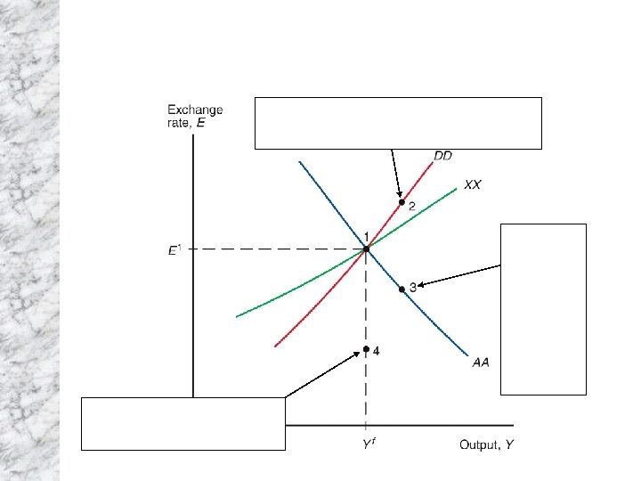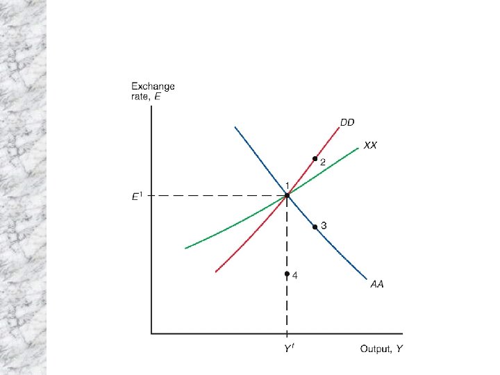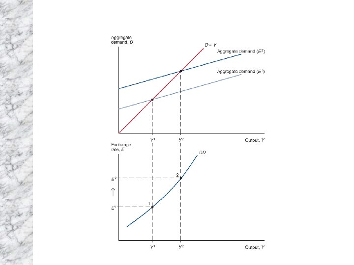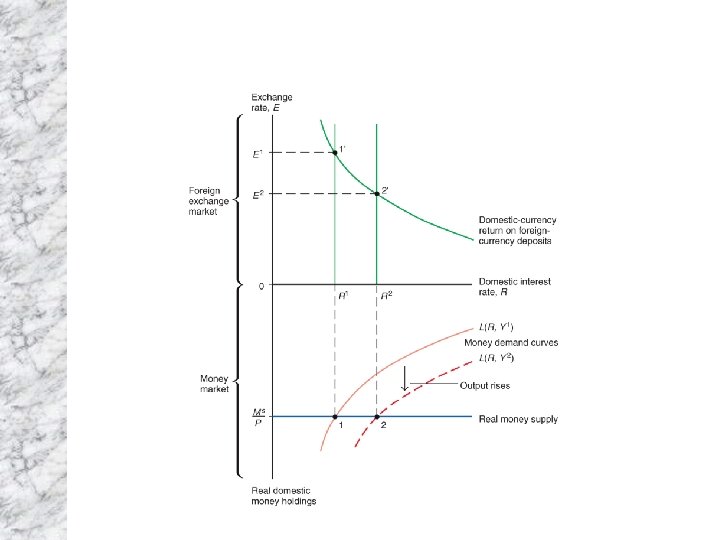 Equilibrium exchange rate in foreign exchange market; Equilibrium output in money market.