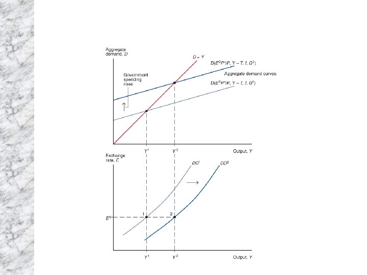 An increase in government purchases raises aggregate demand Temporary fiscal expansion outcome When the increase of government purchases is permanent, the domestic currency is expected to appreciate, and does appreciate.