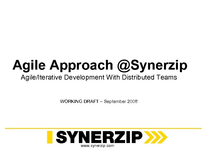 Agile Approach @Synerzip Agile/Iterative Development With Distributed Teams WORKING DRAFT – September 2008 www. synerzip. com