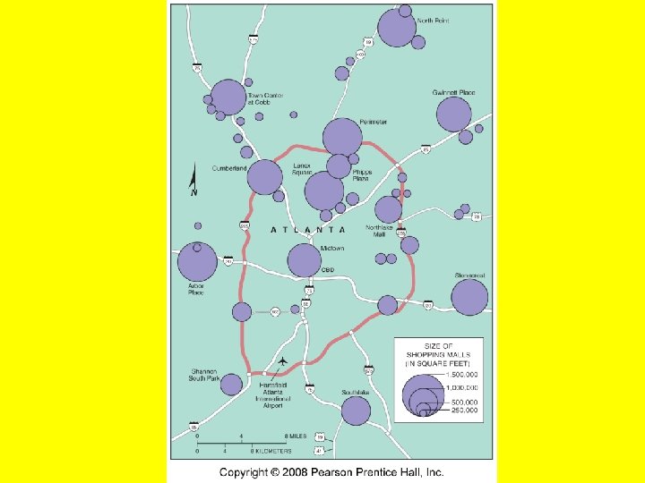 Excluded from the CBD 1. Manufacturing – moved to suburbs – replaced with offices, shops, parks, etc. 2. Lack of Residents – pushed by high rents; pulled by better schools, etc. a. Empty nesters and professionals w/o children still remain 3. European CBDs – preserve its historic “old towns” – low rise and narrow streets 4. Europe’s tallest building is 688 feet (Sears Tower = 1450 ft. ) Suburbanization of Businesses 1. Land is cheaper and most of the customers are there 2. Zoning has restricted shops from residential areas – no walking, more cars 3. Shopping malls require 100 acres of land 1 million square feet of space
