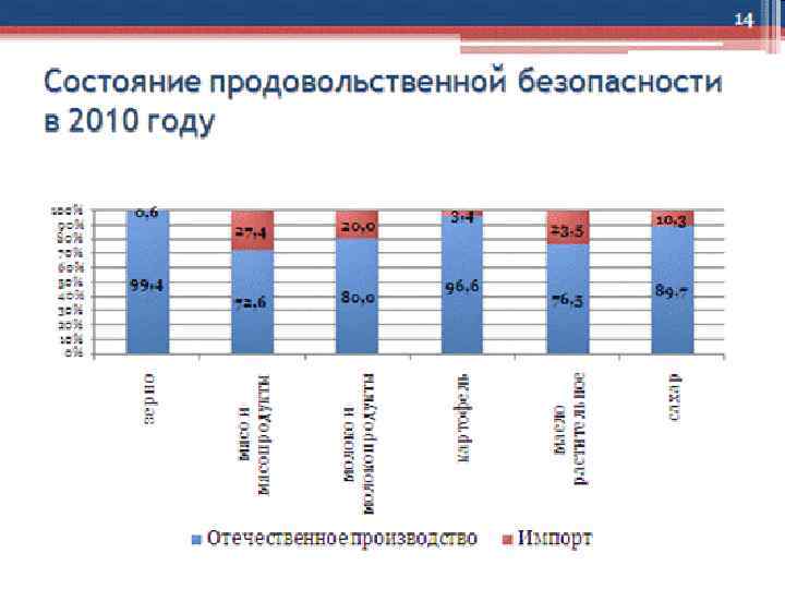 Показатели развития АПК в некоторых странах мира (на душу населения). Показатель Россия ФРГ США Япония Франция Сельскохозяйс твенные угодья, га 1, 5 0, 2 2, 0 0, 04 0, 2 Пашня, га 0, 8 0, 2 0, 7 0, 03 0, 3 Зерно, кг 576 532 1164 93 576 Картофель, кг 259 112 66 20 104 Мясо, кг 40 82 137 24 85 Молоко, кг 226 345 275 64 394 Улов рыбы и добыча морепродуктов, кг 24 4 17 32 9