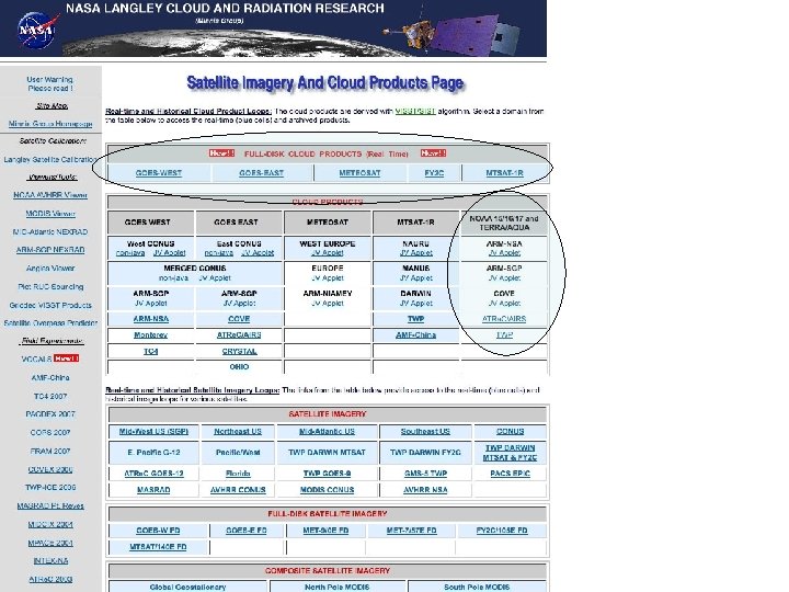 La. RC Products from Geostationary & Polar-Orbiting Satellites http: //www-angler. larc. nasa. gov/satimage/products. html