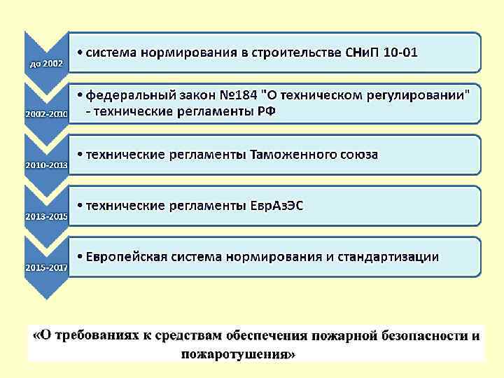 Протокол заседания Комиссии при Президенте РФ по модернизации и технологическому развитию экономики России (протокол № 8, 20 января 2010 года, г. Липецк) …в) подготовить и внести в ГД Федерального Собрания РФ проект федерального закона о внесении изменений в ФЗ-184, предусматривающий: - возможность применения при разработке российских технических регламентов европейских принципов «нового подхода» и «модульного подхода» , основанных на использовании в технических регламентах только общих требований безопасности и упрощении выбора процедур оценки соответствия; - создание единой национальной системы аккредитации на основе международных и европейских принципов и подходов… …е) подготовить проект межправительственного соглашения о техническом регулировании с государствами- участниками ТС и Евр. Аз. ЭС, а также предложения по поэтапному переходу на единую систему технического регулирования … л) подготовить предложения по законодательному совершенствованию института стандартизации…