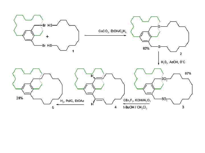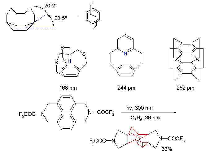 The last molecule is the ultimate macrocyclic cyclophane. This is an astonishing 272 -membered ring composed of benzenes and thiophenes connected by triple bonding carbons.