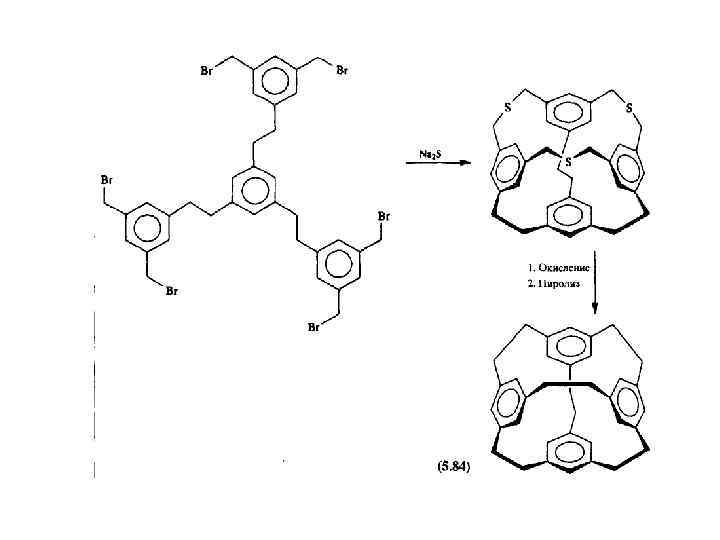Третий путь синтеза - превращение одних циклофанов в другие. При этом наиб. значение имеет экструзия SO 2 из макроциклич. сульфонов либо фотолитич. экструзия серы из тиациклофанов. Напр. , пиридинофан XIV получают по схеме: