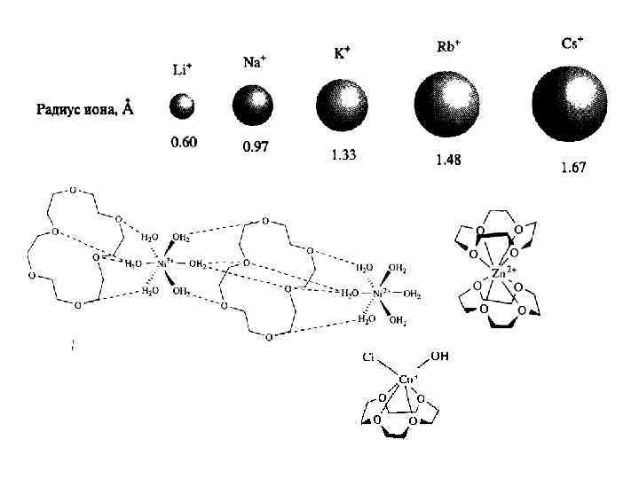 ГЕТЕРОКРАУН-ЭФИРЫ NH, S > O (Ag+) NH > O > S (Pb 2+) O > NH > S (K+, Tl+, Ba 2+) Переходные – плохо связываются 18 -К. -6 из-за маленького радиуса