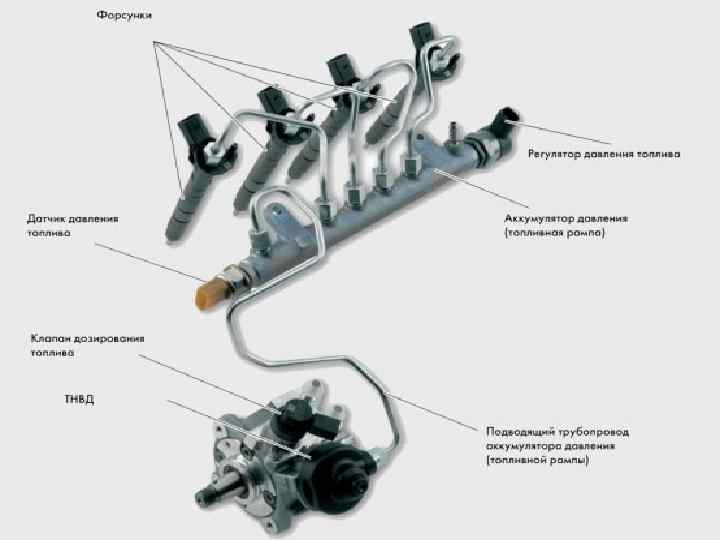 Термин «Common Rail» означает «общая балка или рампа» и служит для обозначения общей топливной рампы (аккумулятора давления) для всех форсунок ряда цилиндров.