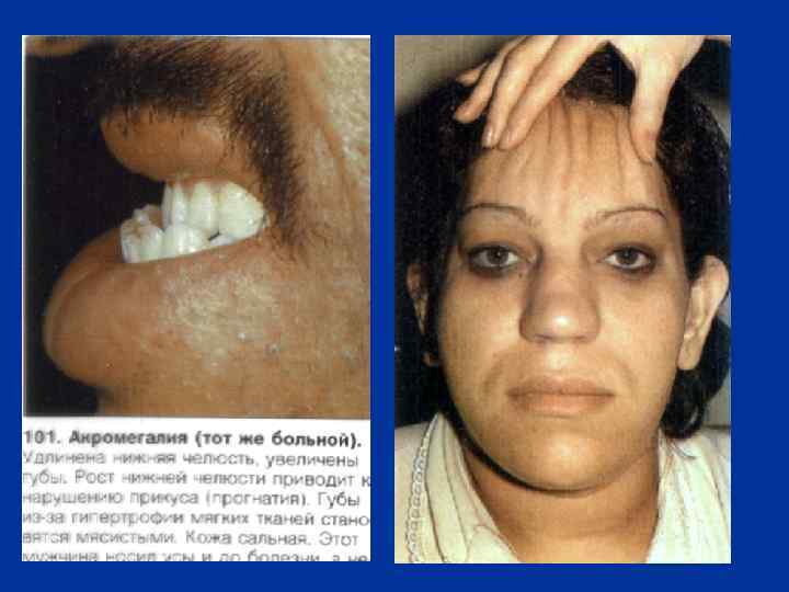 • существует парциальная акромегалия повышенная чувствительность некоторых тканей к действию СТГ увеличение некоторых органов (только головы или языка, или кистей рук, или стоп); • существует акромегалоидный тип конституции, который может переходить в акромегалию
