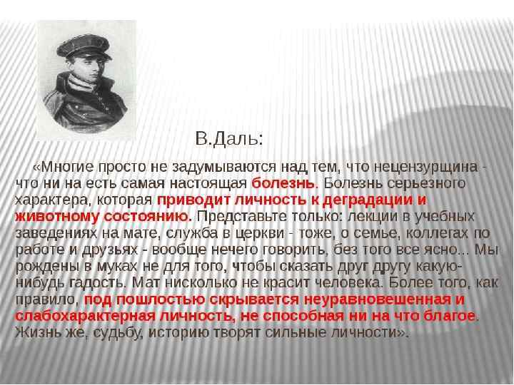 Выводы Политические катаклизмы порубежной поры изменили условия функционирования русского языка. Возросшая роль средств массовой информации в современном нам мире и их установка на непринужденное общение обусловили либерализацию языка, изменили отношение к нему людей. В наши дни мы повсеместно наблюдаем расшатывание литературных норм, расширение неформального общения. Результатом этих процессов стало перемещение периферийных элементов языка (жаргона, сленга, просторечья) в центр системы. Все явления создали яркую, неоднозначную, но вполне объективную картину жизни новейшего русского языка, языка динамичного, развивающегося.