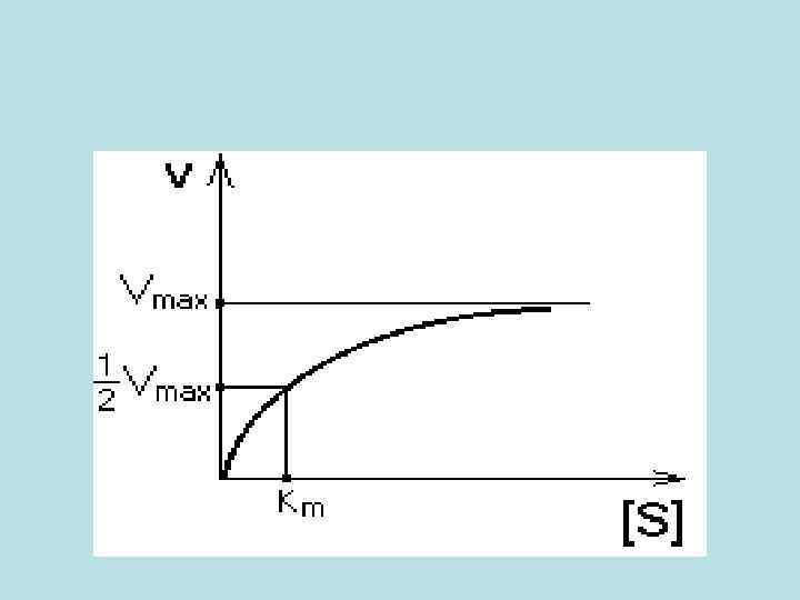• Предельное значение, к которому стремится гипербола - Vmax данной реакции - характеризует максимальную работоспособность фермента: • Vmax=k+2. [E] • Таким образом, Vmax - это предел, к которому стремится скорость реакции при бесконечном повышении концентрации субстрата. • Км - это КОНСТАНТА МИХАЭЛИСА. • Км численно равна той концентрации субстрата, при которой скорость реакции составляет половину от максимального значения.